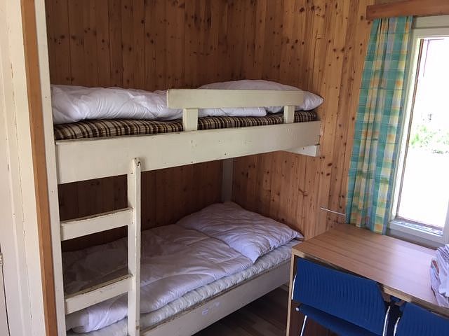 Pokoj obsahuje ubytování pro 4 osoby na postelích, 2 osoby v přízemí a 2 osoby v patře. Pokoj má k dispozici skříň, stolek, židle, WC, umyvadlo, sprchu a zásuvku na 220 V. V chladném počasí je možné za poplatek vytápění. POZOR - nelze ubytovat se psem